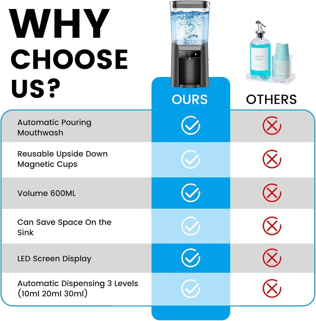¡Dile adiós a los derrames y al desperdicio de enjuague bucal! Con el Dispensador Automático de Enjuague Bucal, obtén la dosis exacta de líquido con un solo toque. Práctico, higiénico y sin contacto, ideal para toda la familia. 🚿🦷